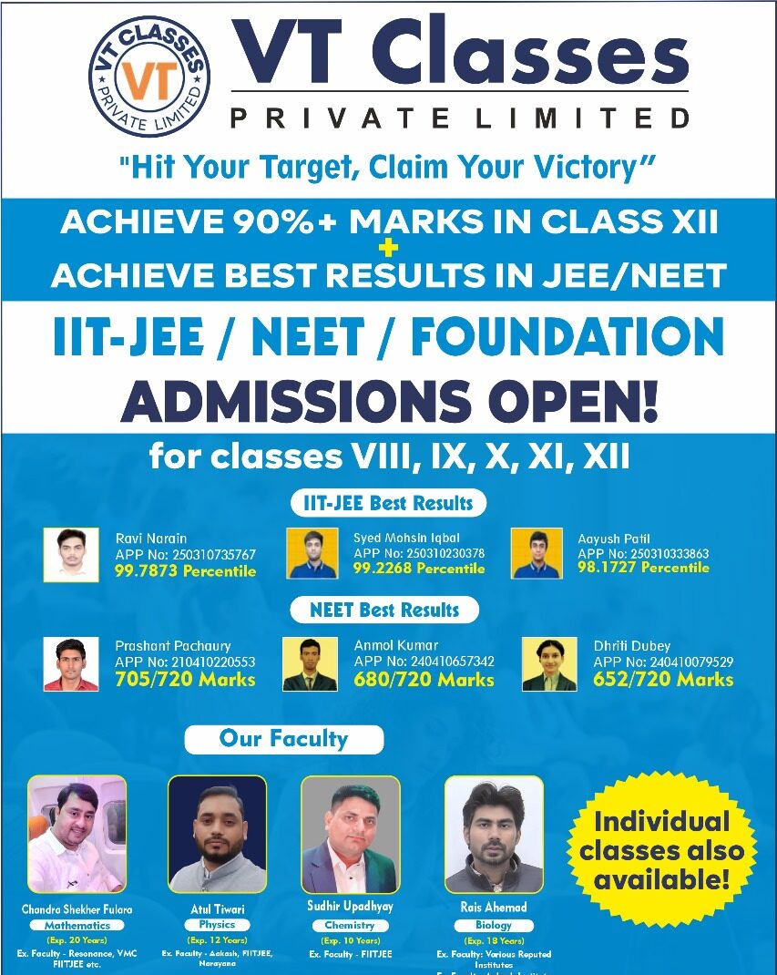 Looking to give your child the right academic support in Noida? VT Classes is now accepting admissions for the academic year 2026. With experienced teachers, focused attention, and a result-oriented approach, we help students build strong concepts and confidence. Start with our 7-day free trial and experience the quality of teaching before enrolling. Choose VT Classes and take the first step toward your child’s academic success.